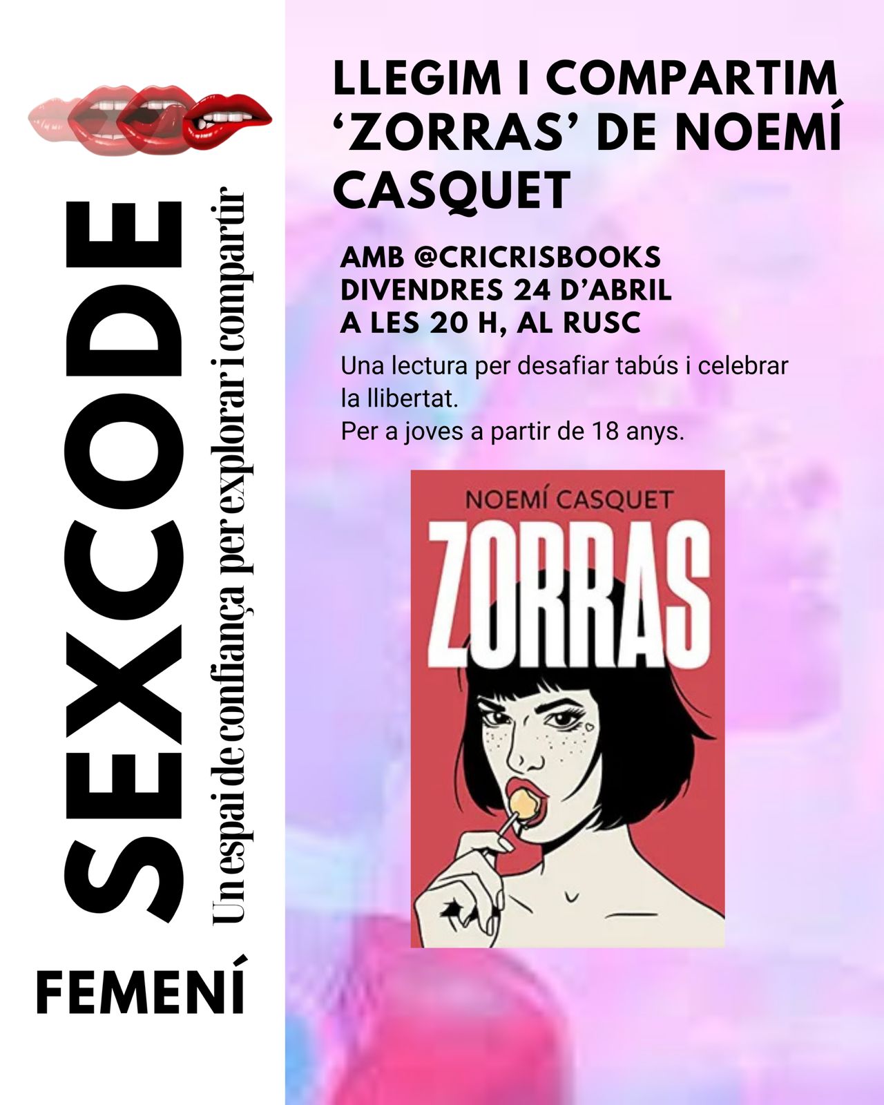 Lectura compartida al voltant del llibre Zorras de Noemí Casquet, per reflexionar i parlar obertament sobre sexualitat i llibertat.