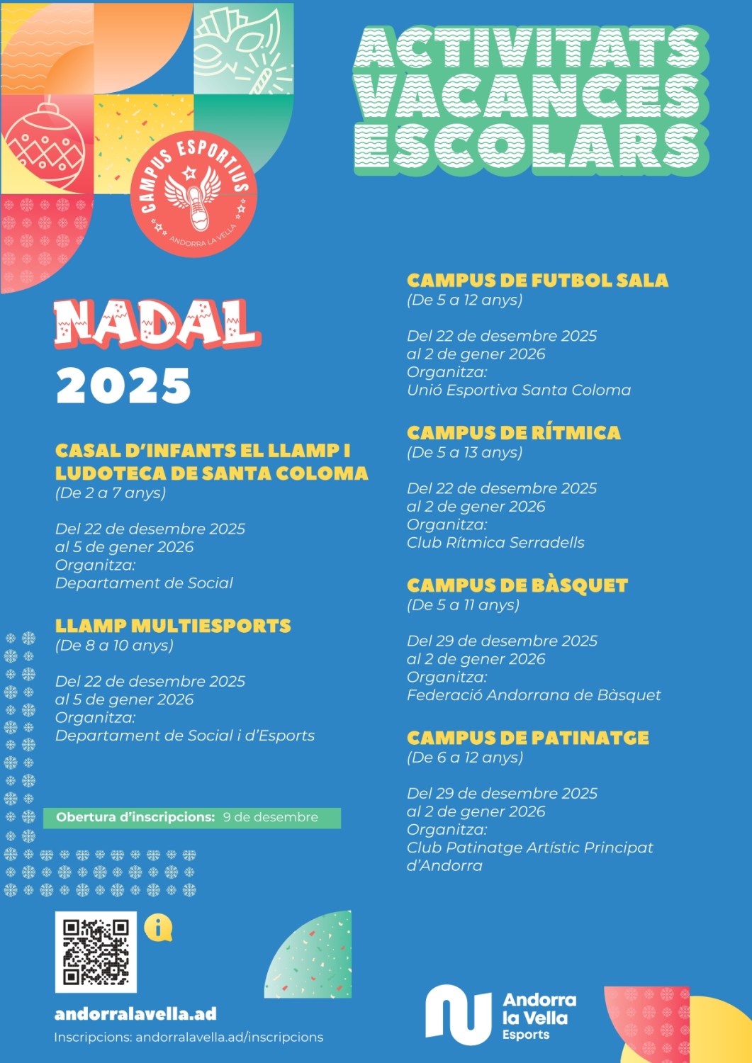 INSCRIPCIONS VACANCES DE NADAL A PARTIR DEL 9 DE DESEMBRE