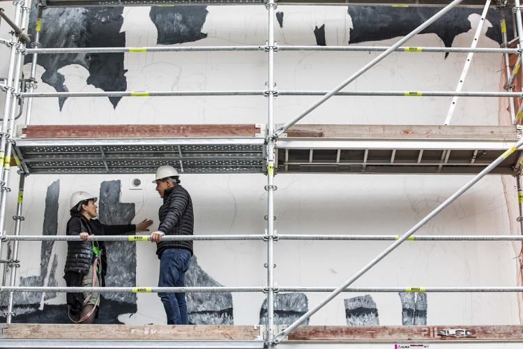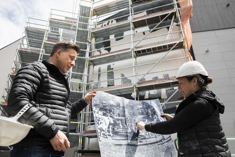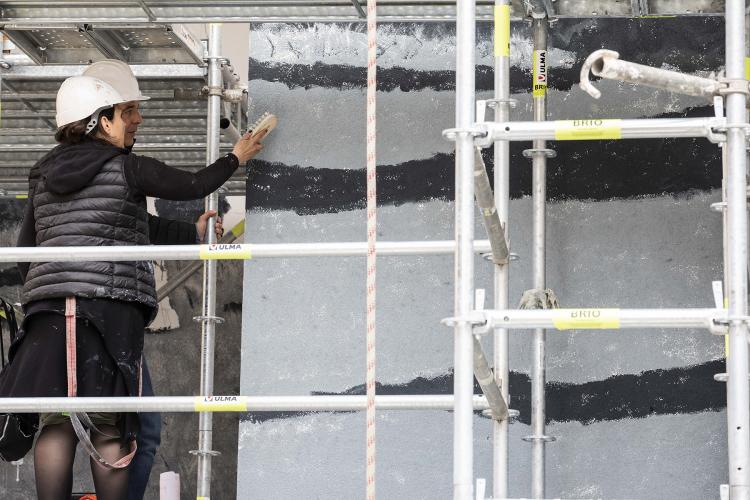 L’artista Samantha Bosque està plasmant en una façana de grans dimensions un muntatge fotogràfic inspirat en el fons de Guillem d’Areny-Plandolit de 1930 per plasmar la fira que se celebrava a la zona. El Comú treballa per disposar properament a Santa Coloma d’una tercera façana artística.