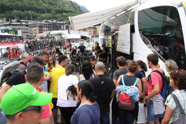 Passades les 13.15 els ciclistes han començat a arribar al punt de signatures, pas obligatori de cada un d'ells abans de la sortida. Ha estat el moment important. Cotxes auxiliars, autobusos amb tots els luxes feien entrada a la gran esplanada del costat del Parc Central, pel deliri dels amants del ciclisme i de l'esport en general. Allà el públic ha pogut veure de ben a prop, als ciclistes, com escalfaven i fins i tot, algun afortunat i afortunada ha pogut fer-se la foto amb algun dels seus ídols.