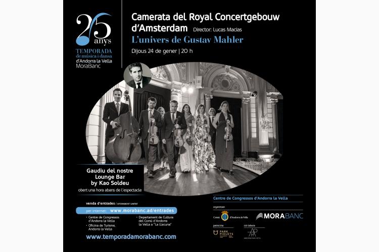 L’estrena del cicle serà el 24 de gener (20 h) de la mà del selecte conjunt de músics de la Royal Concertgebouw Orchestra d’Amsterdam, un grup que des de la seva creació actua per tot el món oferint un repertori personal i íntim que es decideix de manera individualitzada per a cada públic. En l’actuació d’Andorra presentaran un deliciós programa amb obres de Mozart i Mahler. El conjunt ha gravat diversos senzills (Corelli, Mozart, Mendelssohn i Ravel) amb el segell Gutman Records.