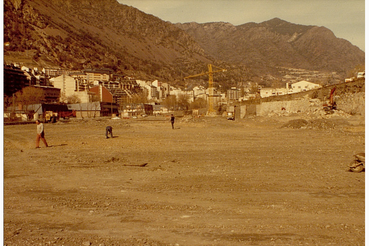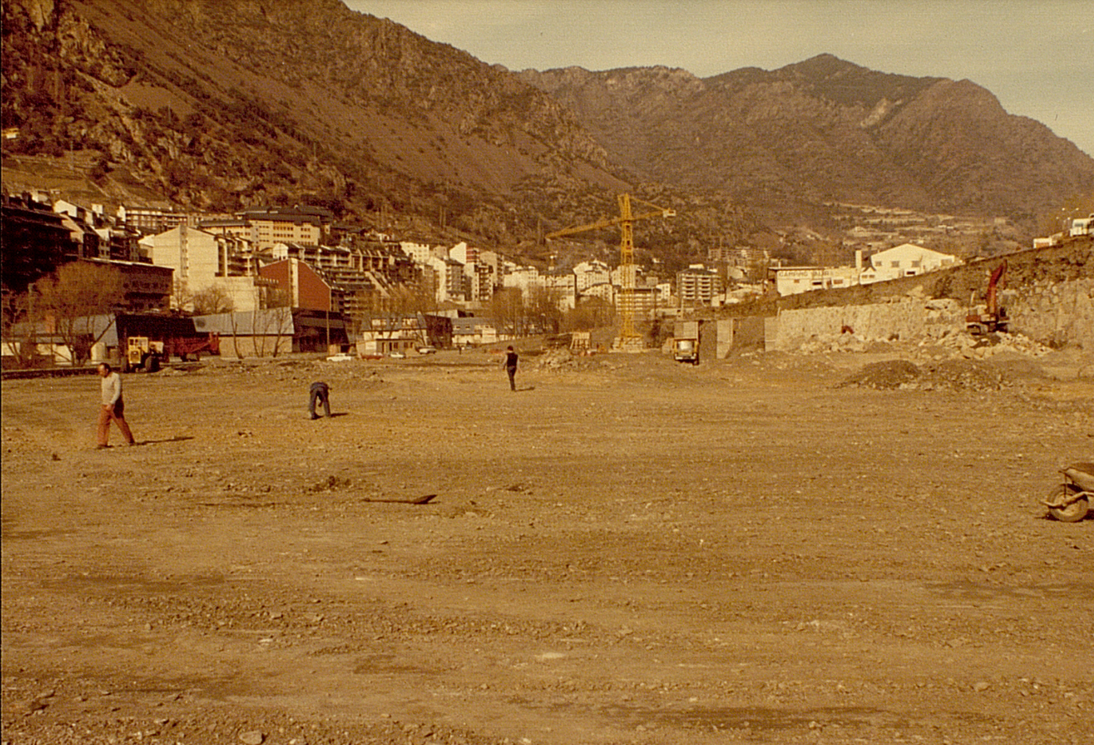 L’Estadi Comunal, de fet, va ser la primera gran instal·lació esportiva que es va aixecar al país. Es va començar a construir l’any 1981 en un terreny de 20.000 metres quadrats, situat a l’avinguda Salou. Els espais, amb una capacitat per a un miler d’espectadors, es van inaugurar l’agost de 1983 amb un camp de futbol homologat, una pista d’atletisme sintètica de sis carrers per 400 metres (va ser i és la única pista d’atletisme del país), zones de llançament de pes, martell, javelina i disc, obstacles i fossats d’aigua. En una posterior ampliació, l’any 1987, es va construir el pavelló cobert. Tos els veïns d’Andorra la Vella van disposar d’un carnet gratuït per gaudir dels serveis de l’estadi durant els primers mesos de funcionament.