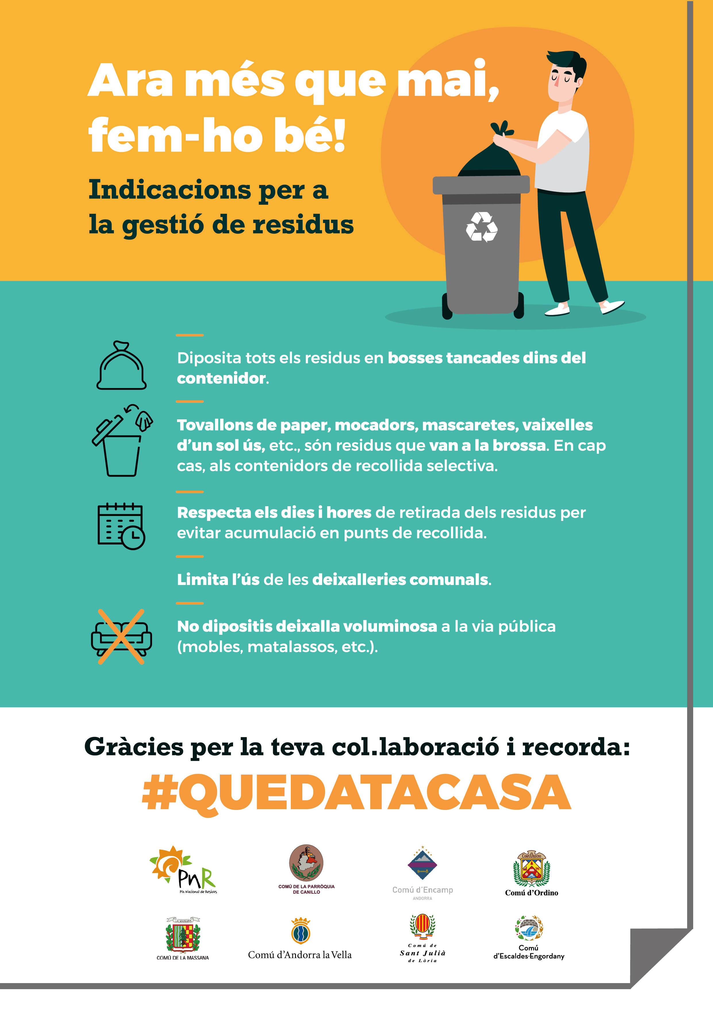 En funció de la evolució de la situació els comuns es reserven el dret de modificar la freqüència i els horaris de la recollida dels residus. En aquest cas, els comuns us aniran informant.