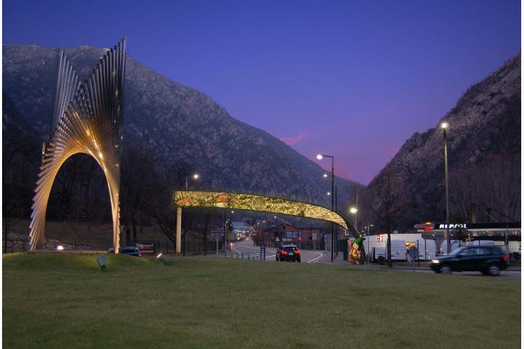 Durant l’estiu, s’instal·larà un portal d’entrada de 30 metres de llargada i 9 d’alçada que pretén captar l’atenció dels conductors i prioritzar que els vehicles en direcció a la capital, a l’encreuament de la rotonda de La Margineda, accedeixin per l’avinguda d’Enclar. La idea, segons ha exposat Josep Adserà, ha estat crear una escultura amb una forma harmònica amb l’entorn que convidi els conductors a passar-hi per sota. La cara vista de l’estructura metàl·lica per als vehicles procedents del sud s’equiparà amb una malla de LED d’uns 50 metres quadrats que permetrà la projecció d’imatges i vídeos, creant un gran reclam d’accés a l’avinguda d’Enclar.
