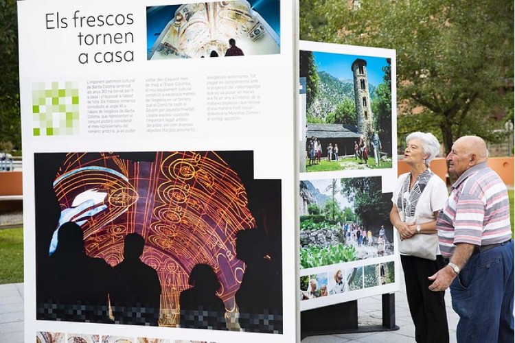 L’exposició de gran format La nova Santa Coloma, que mostra els canvis que ha experimentat la població en els darrers quatre anys, s’ha inaugurat aquesta tarda. Consta de quinze plafons de gran format i està instal·lada en un dels nous espais emblemàtics de la parròquia: els exteriors de l’espai Columba, la sala d’exposicions que acull les pintures murals de Santa Coloma del segle XII i que s’ha construït en un terreny cedit pel Comú al Govern per aquesta finalitat.