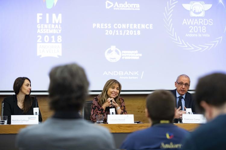 La cònsol major, Conxita Marsol, ha remarcat que la gala dels FIM Awards ens posa en el punt de mira del món del motor, però també en el de l’àmbit dels congressos “perquè no només tindrem la gala, també rebem l’assemblea general per escollir el nou president de la FIM”. A més, ha llançat una novetat de darrera hora, avançant que "estem treballant perquè el diumenge 2 de desembre puguem oferir un show acrobàtic de motos amb pilots professionals obert al públic a l’aparcament d’autobusos situat al davant de Govern. Això serà una manera de permetre la participació als ciutadans del país”.