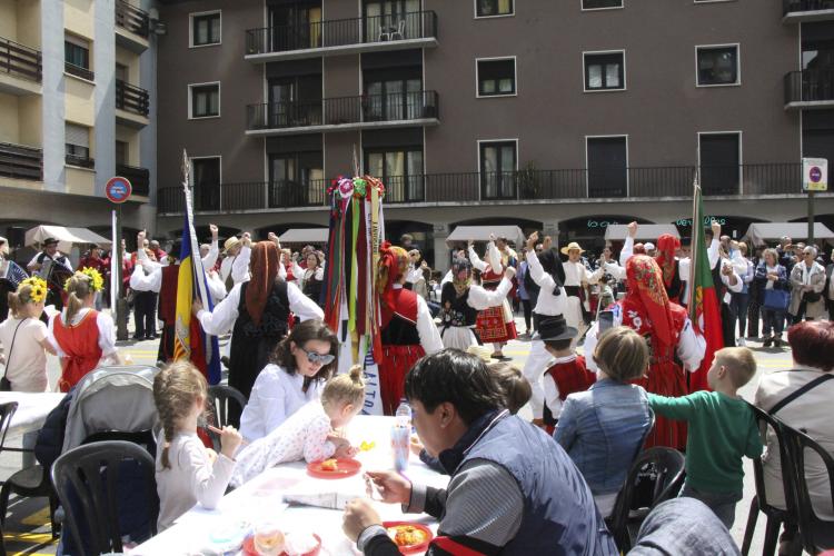 Portugal, Xile, Perú, Rússia, Equador, Filipines, Veneçuela, la Xina com a novetat i, evidentment, Andorra, són els països i les regions que participen a la 2a Mostra gastronòmica 'La diversitat a taula', que té lloc a la plaça Guillemó aquest dissabte, dins del programa de la 8a Setmana de la diversitat cultural. Els països i regions han ofert els seus plats i les begudes típiques, des de pernil del bo fins als fideus cuinats en directe per un xef xinès. Aquest dissabte, els col·lectius de residents de diferents nacionalitats han protagonitzat una cercavila des de la plaça del Poble fins a la plaça Guillemó, on han ballat danses típiques, abillats amb els vestits tradicionals. Els cònsols major i menor d'Andorra la Vella, Conxita Marsol i Marc Pons, respectivament, i la consellera de Finances, Comptabilitat, Administració i Noves Tecnologies, Maika Nin, han visitat totes les parades i han entregat als presidents de les associacions el davantal de la Setmana de la diversitat cultural.