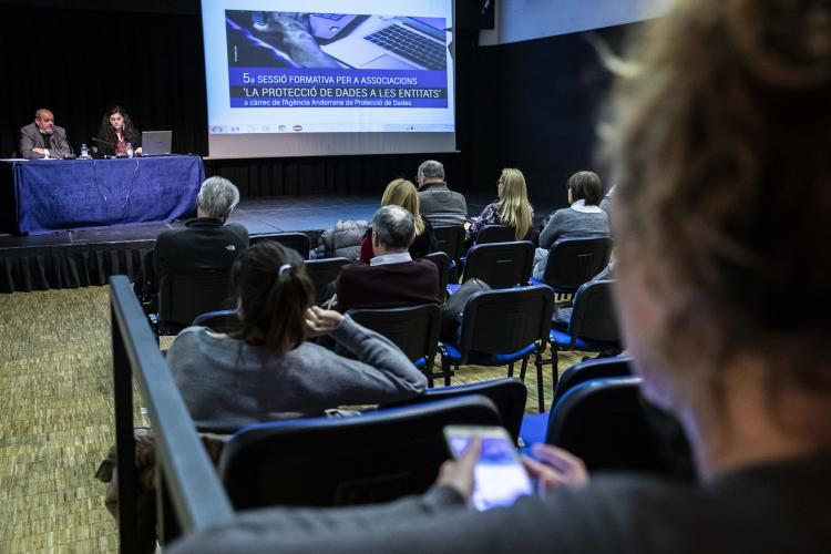 La sala d’actes del Centre Cultural La Llacuna va acollir ahir a la tarda una nova sessió formativa adreçada a les associacions sense ànim de lucre que hi ha inscrites al Registre Comunal d’Associacions d’Andorra la Vella. La trobada d’ahir, la cinquena que organitza el servei de Participació Ciutadana amb l’objectiu oferir assessorament sobre qüestions de gestió i organització, es va centrar en la protecció de dades personals i va anar a càrrec del responsable de l’Agència Andorrana de Protecció de Dades, Joan Crespo.