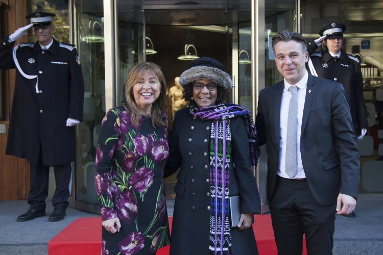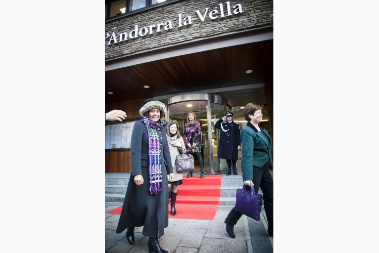 La visita oficial que la secretària general de l'Organització Internacional de la Francofonia, Michaëlle Jean, està fent des d'aquest dilluns i fins dimecres a Andorra ha fet parada aquesta tarda al Comú d’Andorra la Vella, on ha estat rebuda per la cònsol major, Conxita Marsol, i pel cònsol menor, Marc Pons. Després de signar el llibre de visites, els cònsols han obsequiat Michaëlle Jean amb un llibre fotogràfic de la parròquia. Posteriorment, han mantingut una reunió breu en un clima d’entesa i de col·laboració.