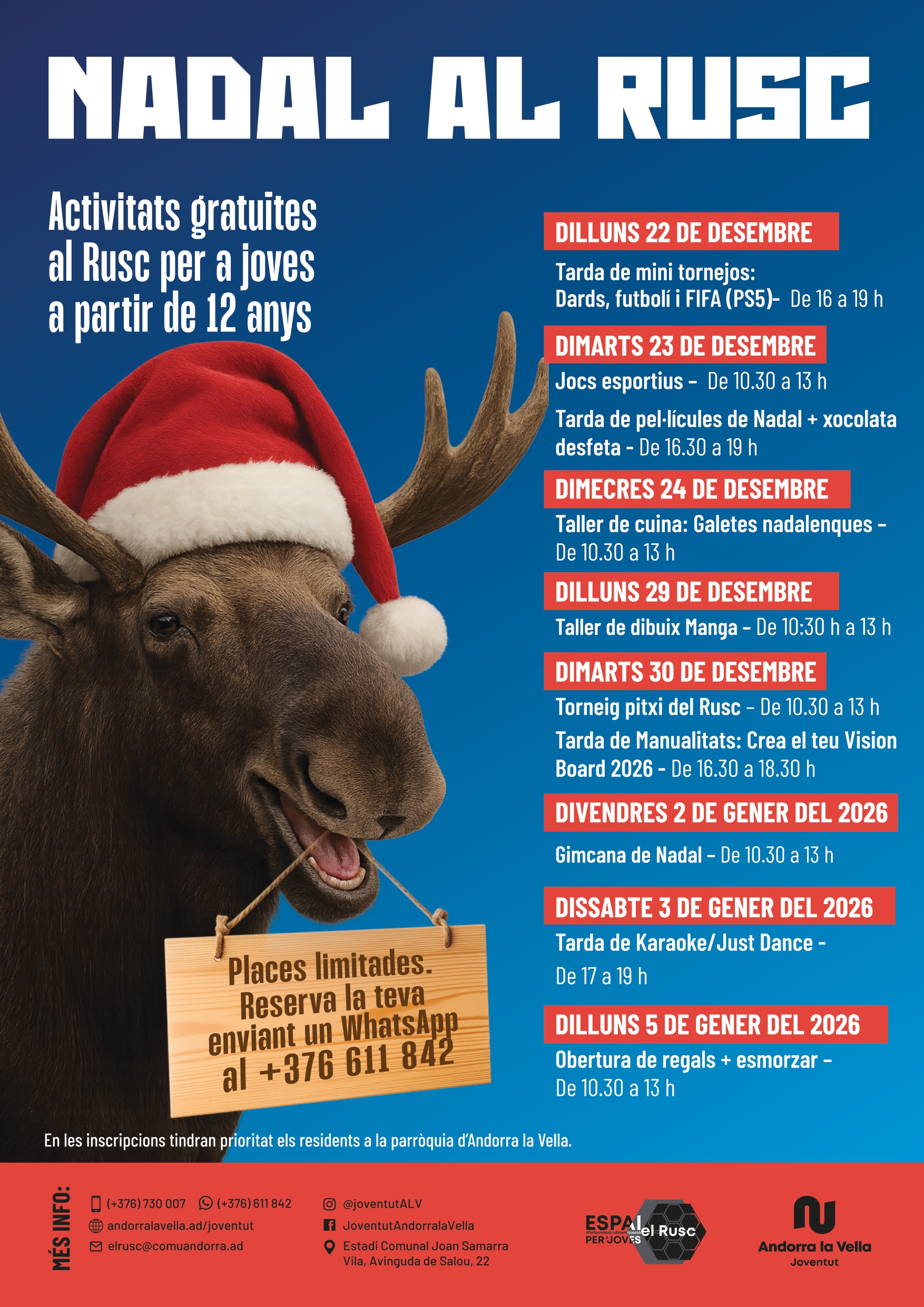 Aquest Nadal, el Rusc proposa un programa d’activitats gratuïtes per a joves a partir de 12 anys, amb tallers, tornejos i propostes lúdiques durant les festes.