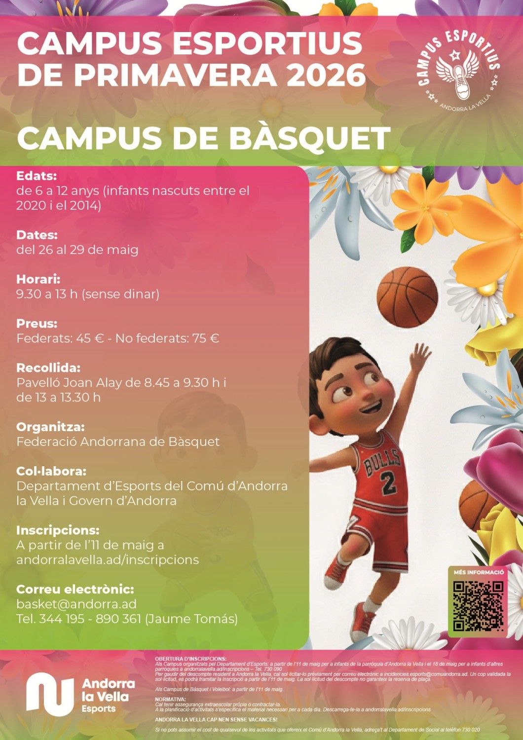Es poden realitzar a partir de l'11 de maig, en el següent enllaç. Inscripció campus de bàsquet primavera 2026