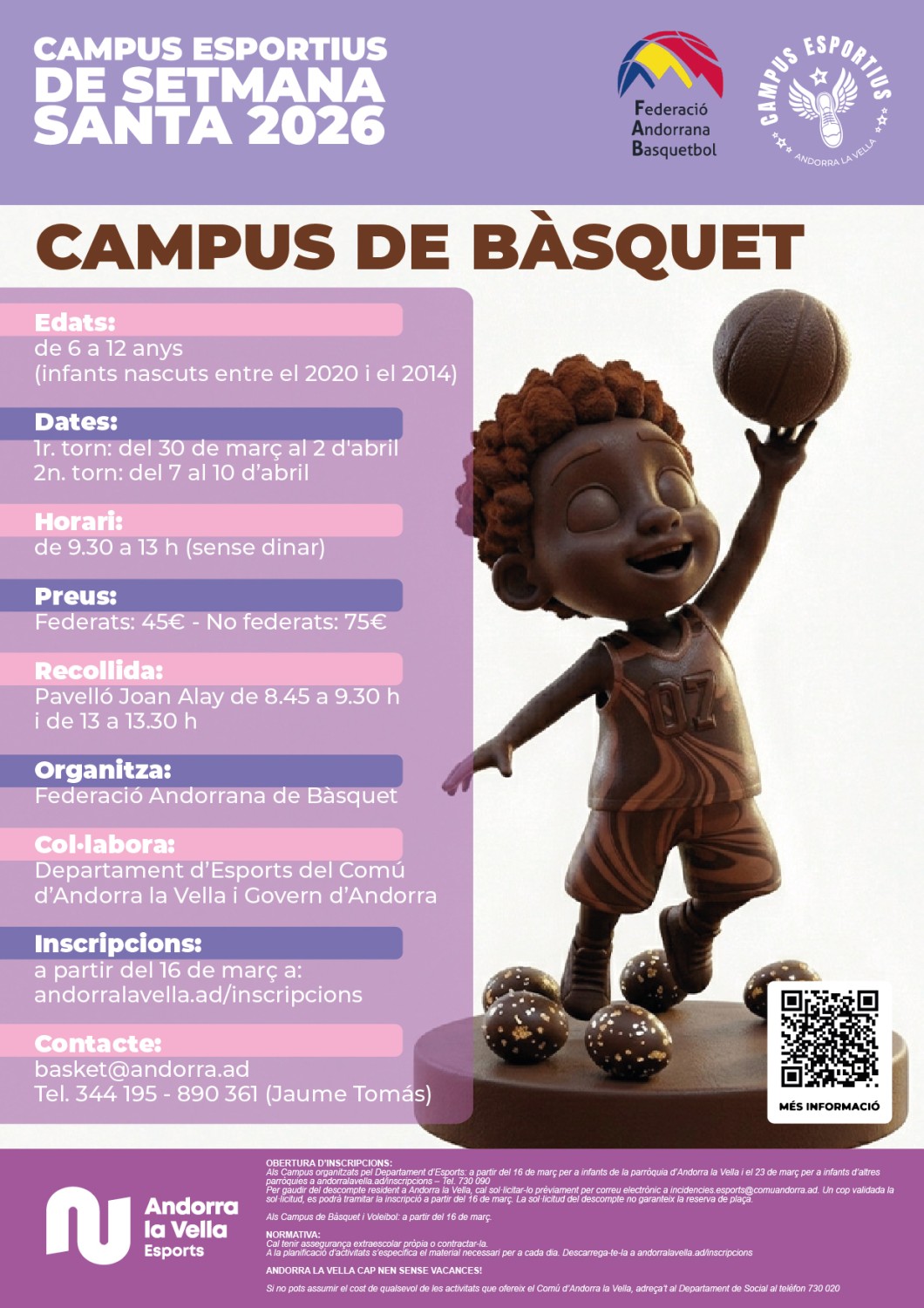 CAMPUS BÀSQUET, 6 a 12 anys, del 30 de març al 10 d'abril