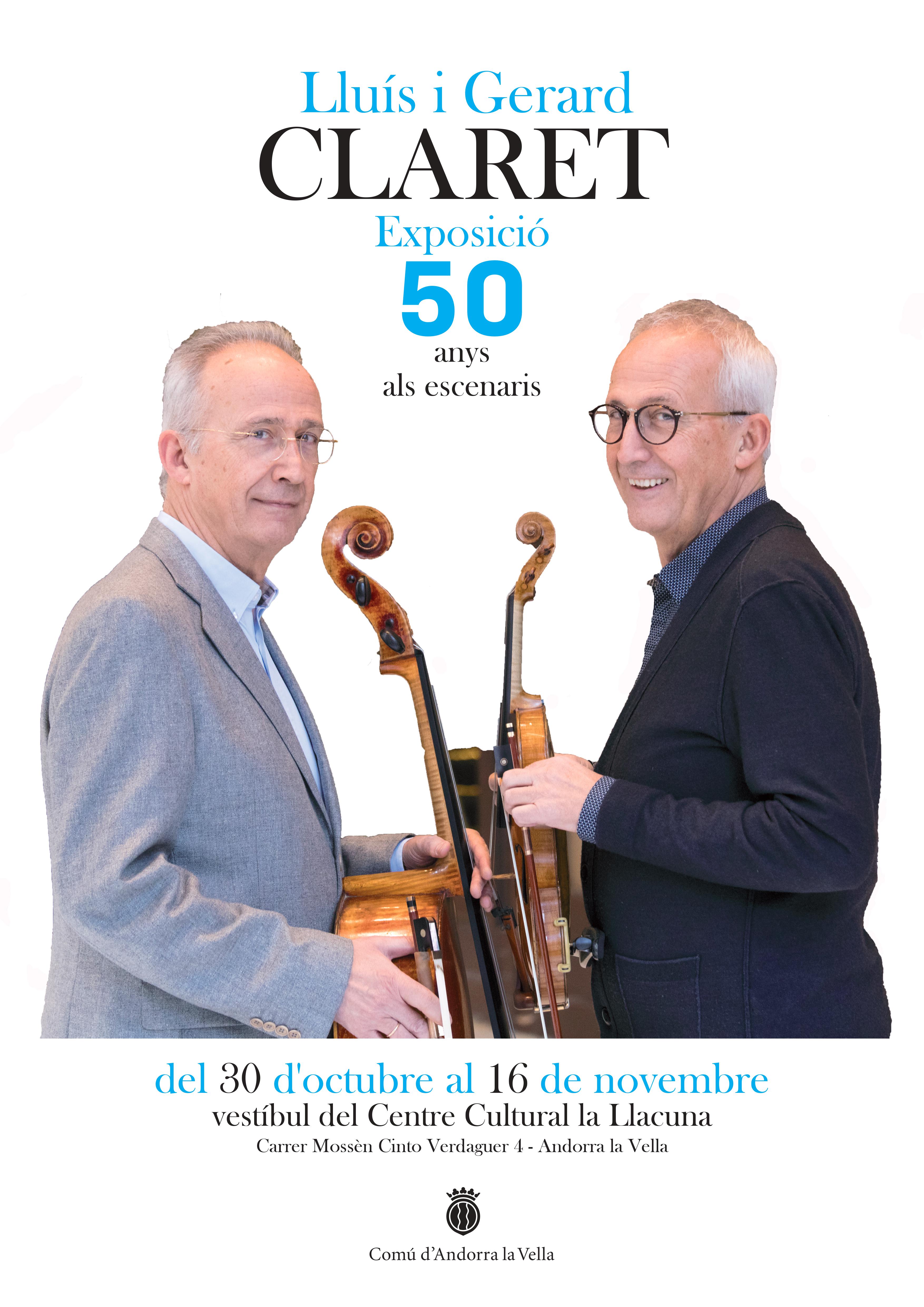 El Comú d’Andorra la Vella homenatjarà els germans Lluís i Gerard Claret pels seus 50 anys de carrera artística amb una exposició al Centre Cultural La Llacuna. La mostra fa un extens repàs per les cinc dècades ininterrompudes d’activitat concertística dels músics andorrans: el violoncel·lista Lluís Claret i el violinista Gerard Claret. Alhora, plasma el seu compromís amb l’ensenyament musical a Andorra. Els germans van ser impulsors actius de la creació de l’Institut de Música d’Andorra la Vella, juntament amb Bartumeu Rebés i el Comú, el març de l’any 1980.