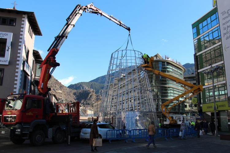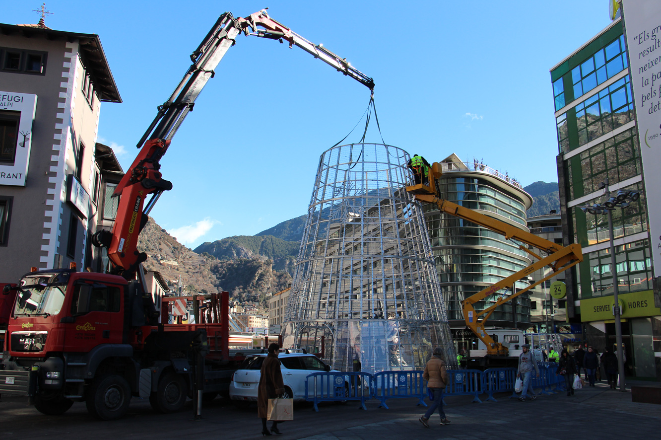 El Comú d’Andorra la Vella ha començat aquest dimecres el desmuntatge de l’arbre de Nadal gegant instal·lat a la plaça de la Rotonda. De manera paral·lela, també s’ha començat a retirar l’enllumenat de Nadal que s’anirà traient de manera progressiva al llarg dels pròxims dies, i un cop ha passat la Candelera. Tal com han informat des del Comú d’Andorra la Vella, les darreres llums que es retiraran seran les de l’avinguda Meritxell, ja que es considera que són un reclam per al turisme. Després d’aquest pont de Carnaval s’espera que ja estiguin totalment retirats tots els llums i motius nadalencs.
