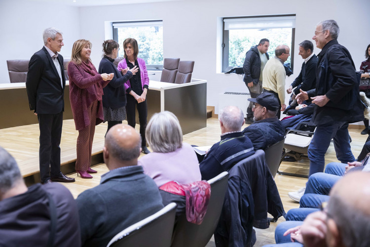 La cònsol major, Conxita Marsol, juntament amb la consellera de Social i Participació Ciutadana, Ester Vilarrubla; Xavier Cardelús; i Deborah Ribas, en nom de la Fundació Julià Reig, han fet entrega de les claus a la trentena de participants en el projecte en un acte a la sala de Consell de Comú.