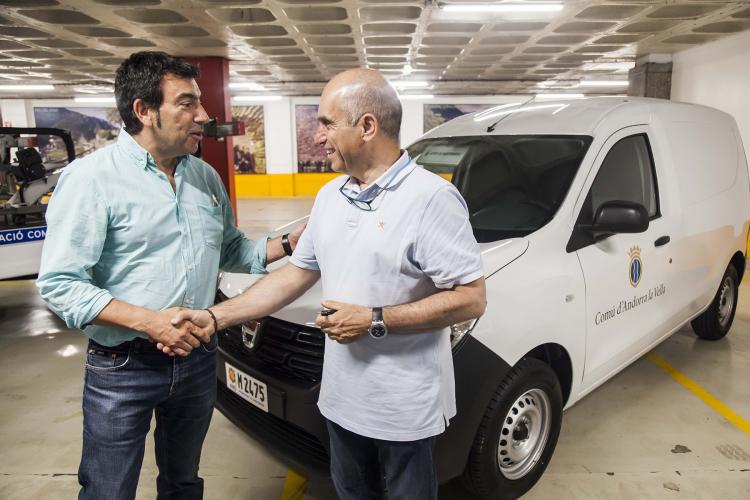 La cònsol major d’Andorra la Vella, acompanyada per diversos consellers, ha fet entrega als responsables de diferents departaments del Comú de les claus dels nous vehicles. Entre el 2016 i el 2017 s’ha renovat la flota amb 30 vehicles. Això pal·lia progressivament l’envelliment del parc mòbil del Comú, que ara se situa en una mitjana d’onze anys.