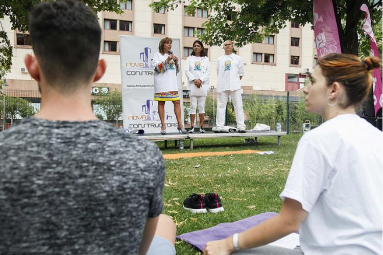 Desenes de ioguis han pres part de l’activitat a l’aire lliure, malgrat la incertesa de la meteorologia que finalment ha donat una treva.