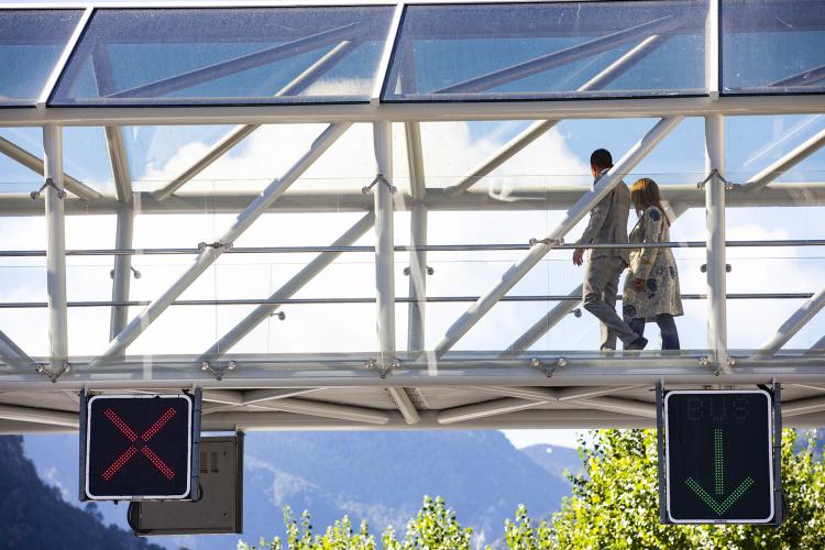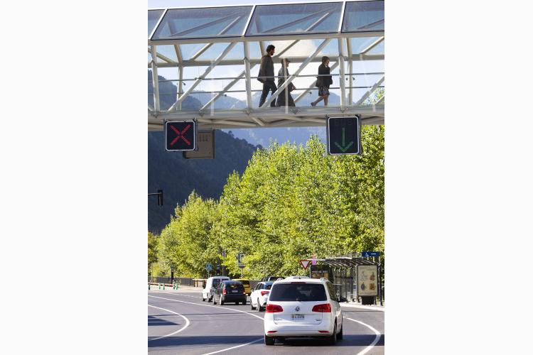 És la proposta guanyadora del primer procés participatiu del Govern. La posada en marxa de la passarel·la alleugereix el trànsit a la zona ja que s’ha pogut eliminar el semàfor i el pas de vianants per travessar la carretera entre el Lycée i l’Estadi Comunal.