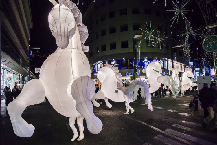 Un dels elements més destacats d’aquests dies serà, d’altra banda, l’espectacle itinerant de gran format que recorrerà dilluns a la tarda, a partir de les 18.30 h, l’avinguda Meritxell des del carrer de la Unió fins a la plaça Príncep Benlloch. En aquesta ocasió, la companyia francesa des Quidams porta per quart any consecutiu el muntatge Fiers à Cheval, protagonitzat per un grup de cavalls blancs lluminosos i que ja s’ha convertit en tot un element identificatiu del Poblet de Nadal.