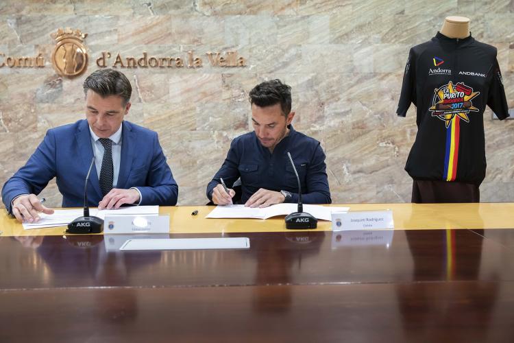 Com a contrapartida del conveni, que se signa per tercer any consecutiu, la imatge del Comú apareixerà en els diversos suports publicitaris per on passarà la cursa. El cònsol menor, Marc Pons, ha estat l’encarregat de rubricar l’acord amb el ciclista i ha ressaltat la repercussió que té tant la cursa com la figura del mateix Joaquim Rodríguez i els beneficis que això suposa per a Andorra la Vella. “Cal tenir en compte que té més de 300.000 seguidors a les xarxes socials, on es farà difusió de la col·laboració”, ha concretat.