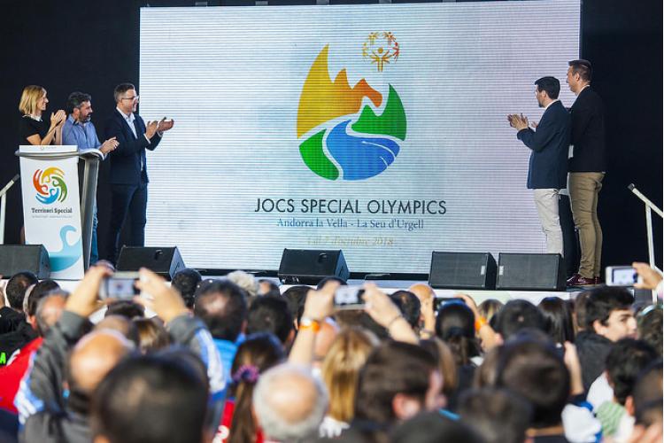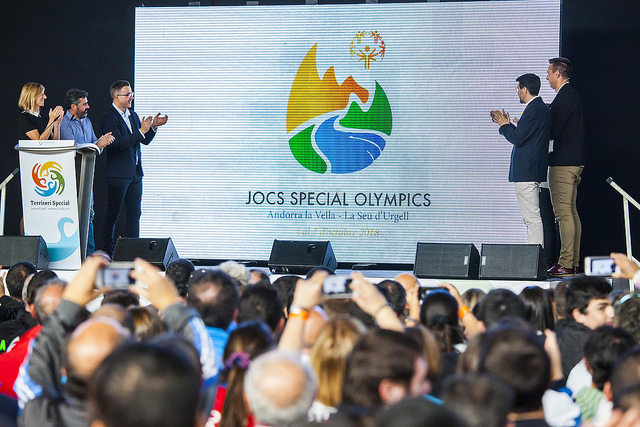 Un dels moments de l’esdeveniment més destacat ha sigut quan s’ha descobert el nou logotip dels Jocs Special Olympics 2018. Sergi Grimau, president de Special Olympics Catalunya, ha presentat el logotip que vol “mostrar tots els elements que uneixen els dos territoris, per primera vegada organitzarem uns Jocs transfronterers i en zona de Pirineu. La nova imatge dels Jocs suma la força del foc olímpic amb la natura de les muntanyes i el riu Valira”.