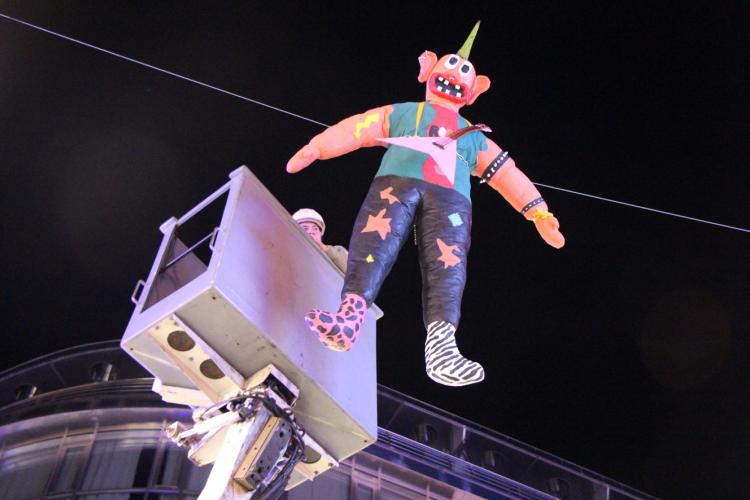 El Carnestoltes ja està penjat al bell mig de l'avinguda de Meritxell, just al davant de l'edifici d'Andorra Telecom. Abans de penjar-lo, però, els integrants de Making of han ofert un pregó, on han fet una repassada humorística als principals temes d'actualitat al Principat.