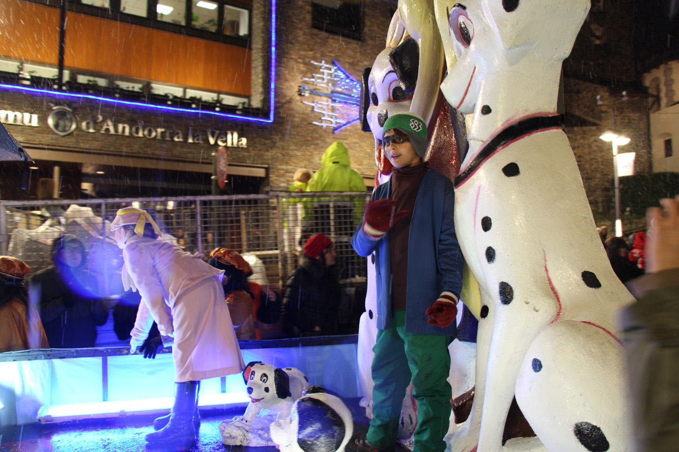 La neu ha fet acte de presència a Andorra la Vella quan faltaven pocs minuts per a l'inici de la cavalcada. Quan s'ha iniciat, però, els flocs han començat a caure a plom sobre el nombrós públic que s'aplegava a les vores dels carrers, esperant rebre els tradicionals caramels i poder saludar els Reis Mags, als patges i als seus acompanyants.