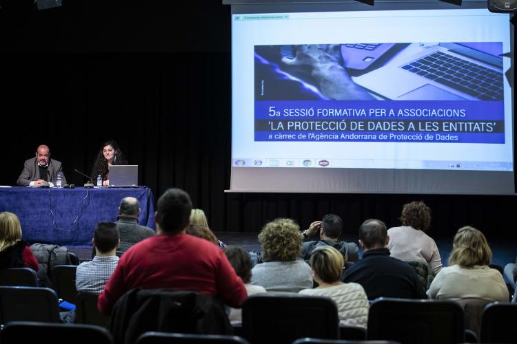 La sala d’actes del Centre Cultural La Llacuna va acollir ahir a la tarda una nova sessió formativa adreçada a les associacions sense ànim de lucre que hi ha inscrites al Registre Comunal d’Associacions d’Andorra la Vella. La trobada d’ahir, la cinquena que organitza el servei de Participació Ciutadana amb l’objectiu oferir assessorament sobre qüestions de gestió i organització, es va centrar en la protecció de dades personals i va anar a càrrec del responsable de l’Agència Andorrana de Protecció de Dades, Joan Crespo.