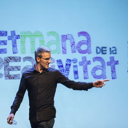 El professor David Calle ha ofert la conferència 'Ajudant a milions d'alumnes a aconseguir els seus somnis gratuïtament' davant d’un públic nombrós, en el marc de la Setmana de la Creativitat que es desenvolupa a la Llacuna.