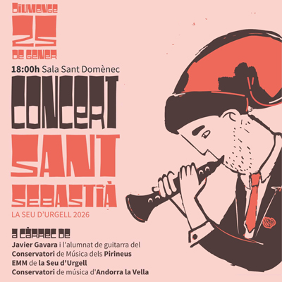 Amb motiu de les Festes de Sant Sebastià, el Conservatori participa al concert tradicional que se celebra a la Seu d’Urgell amb els Conjunts de Guitarra del Conservatori d’Andorra. El concert tindrà lloc diumenge 25 de gener a les 18h a la Sala Sant Domènec, i esdevé una bona oportunitat per mostrar el treball col·lectiu de l’alumnat i reforçar els vincles musicals entre territoris. Una cita oberta al públic que posa en valor la música de conjunt i la col·laboració entre centres.