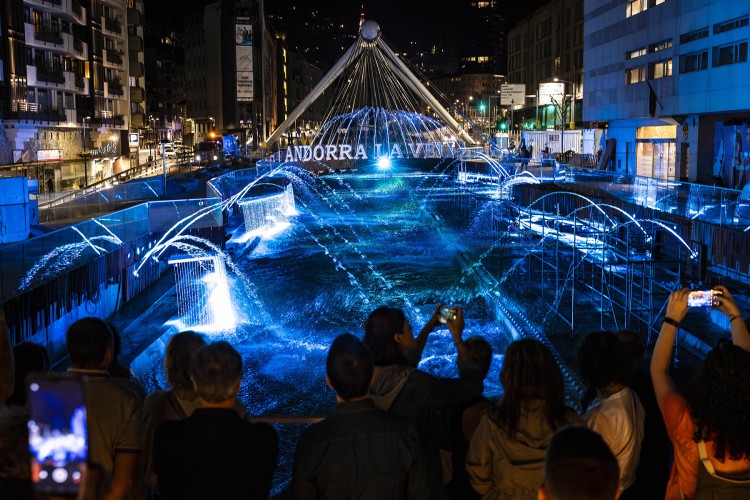 Aquest nou atractiu turístic, que es posa en marxa coincidint amb l’inici de la campanya d’estiu, es basa en una font sobre el riu Valira, els raigs de la qual se sincronitzaran amb llum i música. Durant els darrers dies -ahir a la nit es va fer una prova general- s’han estat fent les últimes comprovacions per assegurar el correcte funcionament del sistema i a primers de la setmana vinent s’acabaran de retirar les bastides i els elements d’obra que hi ha instal·lats.
