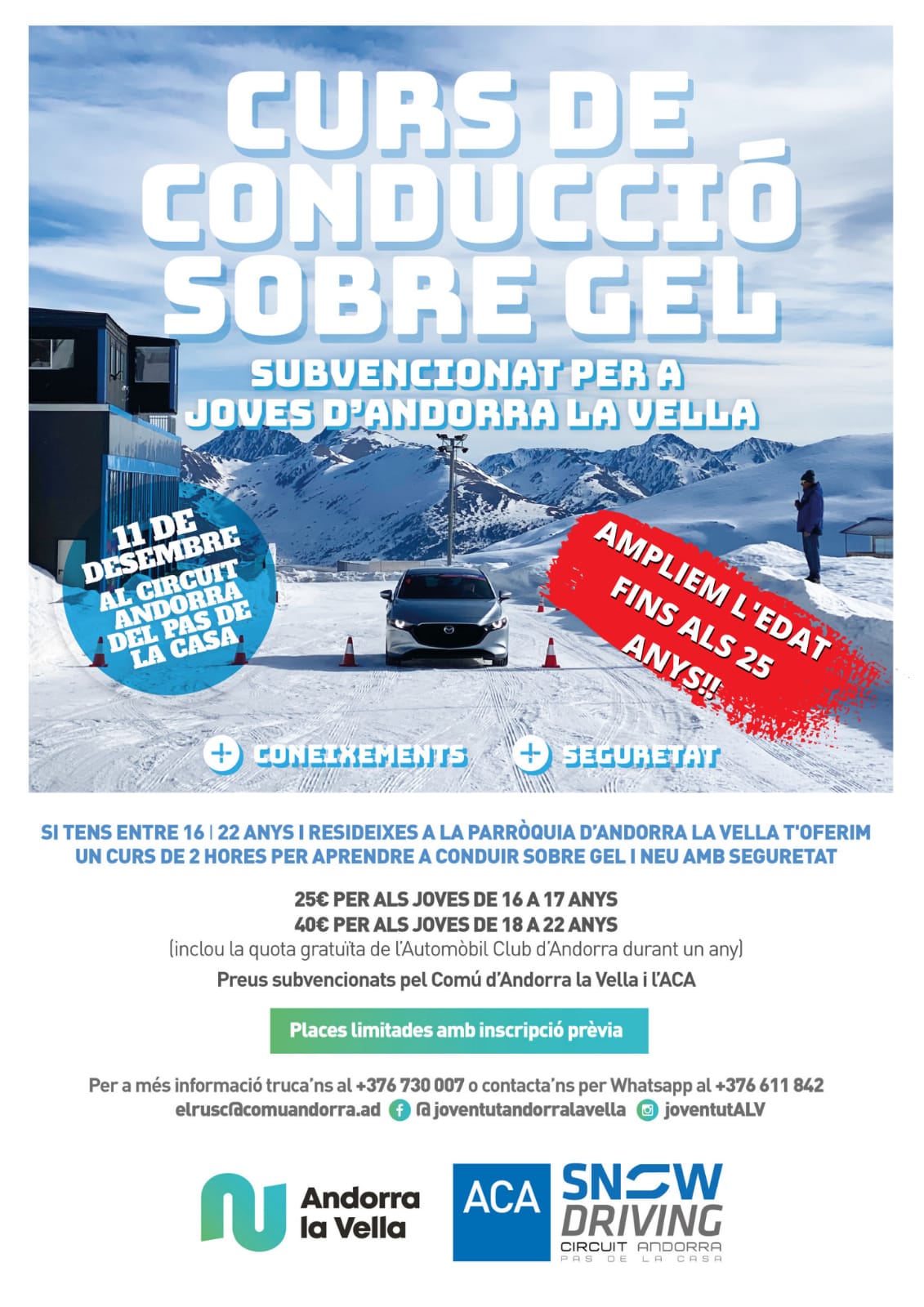 Curs de conducció sobre gel adreçat als joves d'Andorra la Vella d'entre 16 i 25 anys