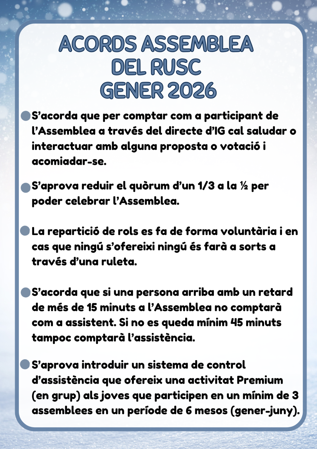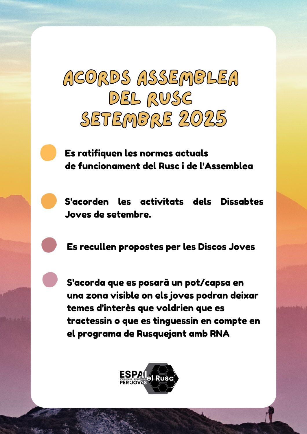 En aquest apartat podreu consultar tots els acords presos en cada assemblea de forma cronològica: