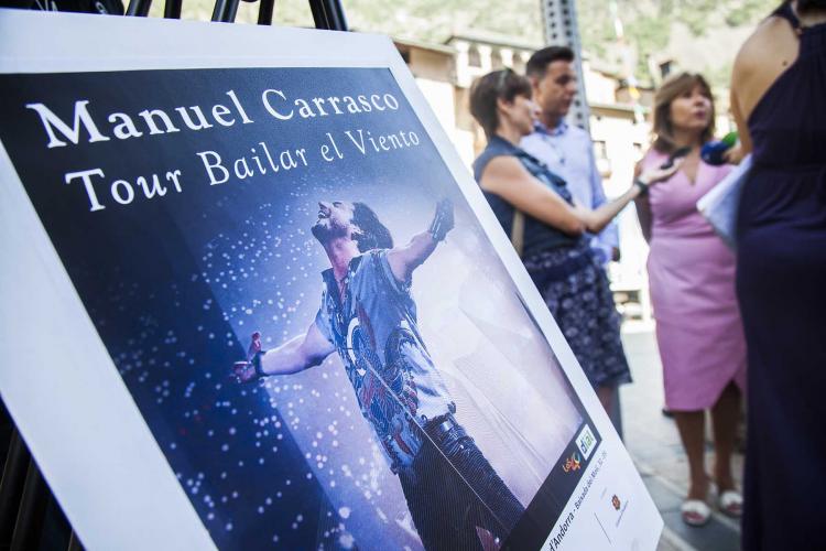 En el marc dels actes de celebració del Dia de Meritxell, el comú d’Andorra la Vella ha presentat aquest dijous al matí l’arribada de Manuel Carrasco amb el tour ‘Bailar el Viento’. El concret del cantant espanyol es celebrarà el proper 6 de setembre al poliesportiu d’Andorra la Vella. Hi haurà un total de 1.880 places disponibles, totes assegudes, i el preu de l’entrada serà d’11 euros. Les entrades es posaran a la venda a partir d’aquest divendres.