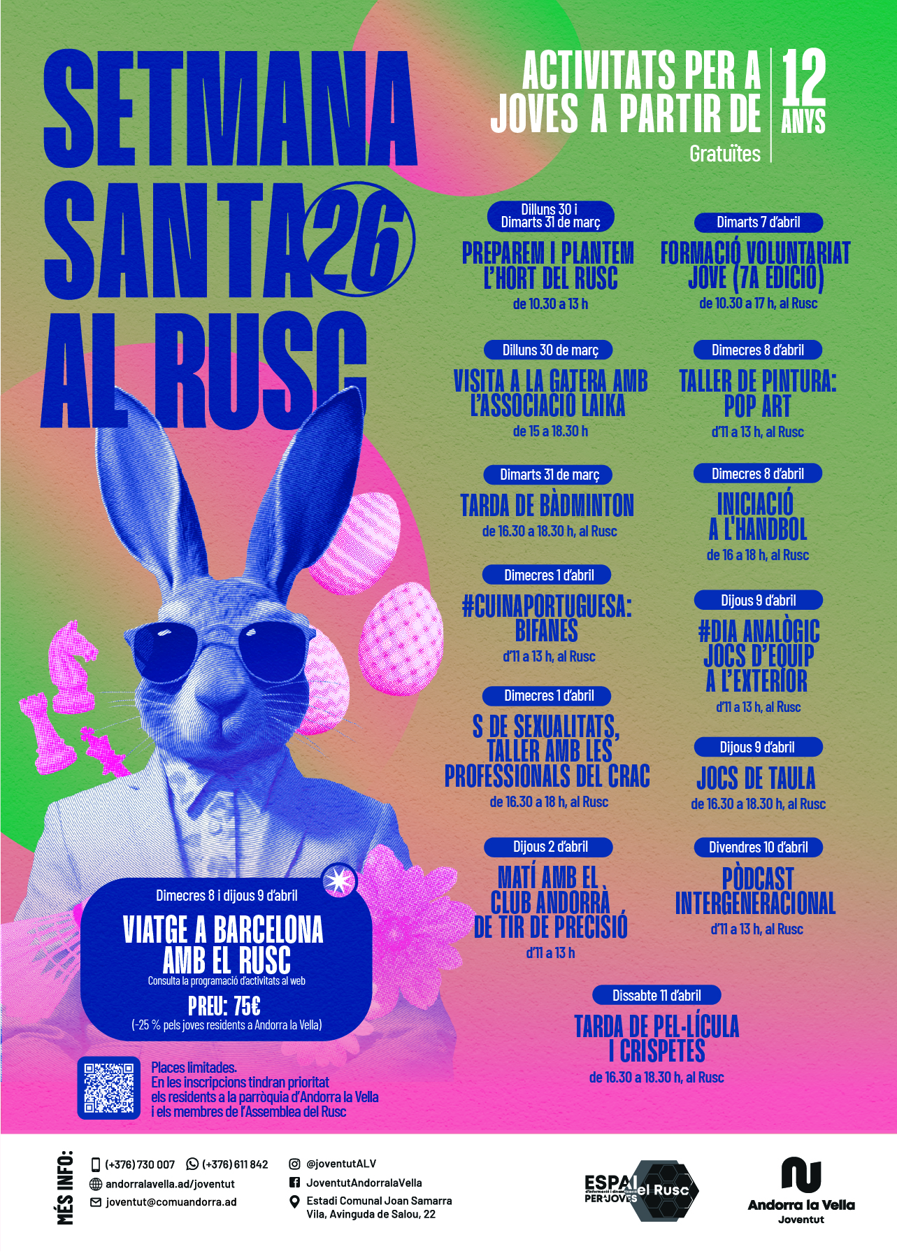Activitat gratuïta. Descarrega't la inscripció fent clic aquí i envia-la omplerta per WhatsApp al 611 842 o bé per correu a joventut@comaundorra.ad