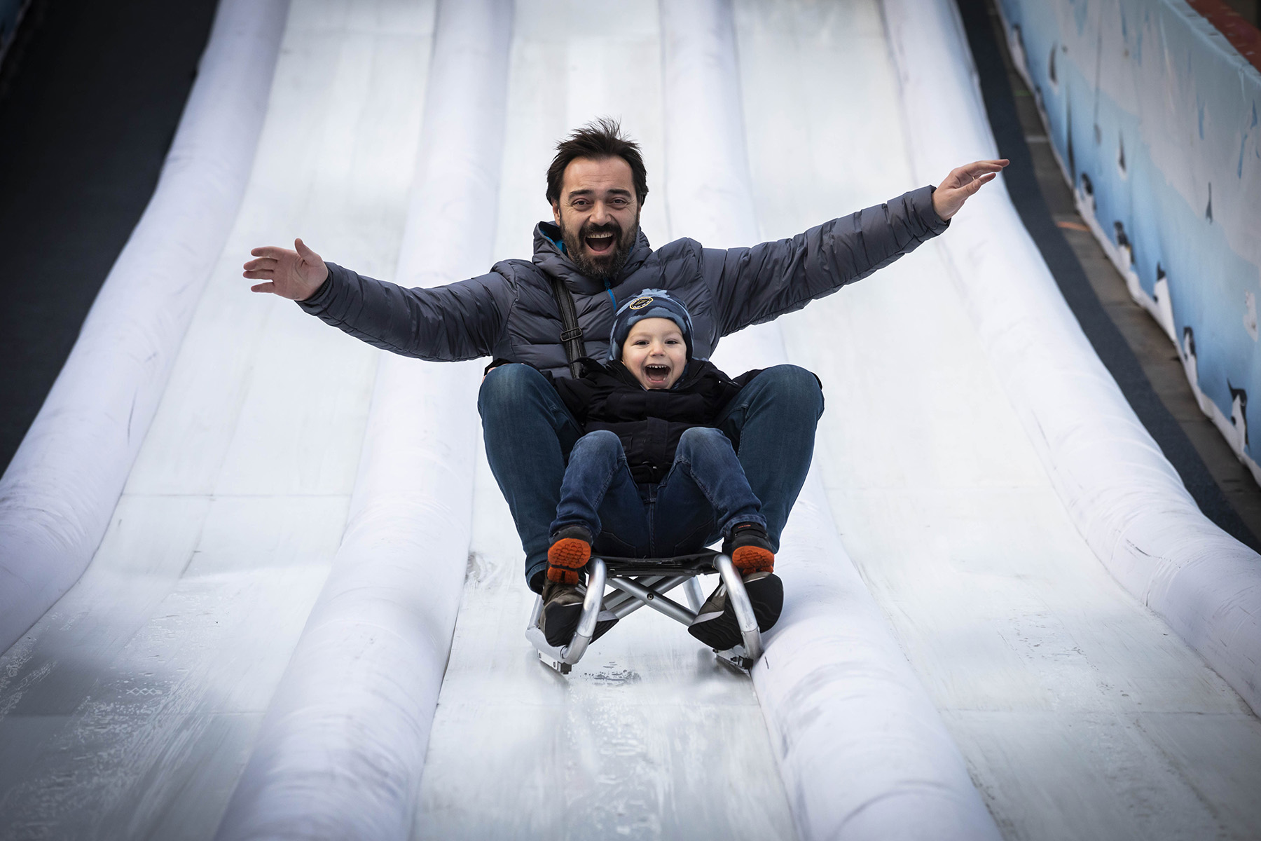 Espectacular tobogan de gel sintètic de 30 metres de llargada i amb una magnífica una pista de patinatge