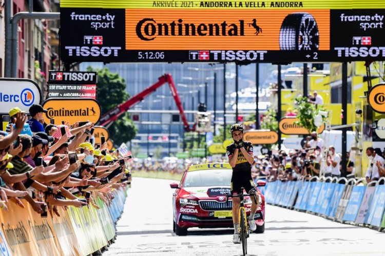 El resident nord-americà Sepp Kuss s’ha proclamat vencedor de la 15a etapa del Tour de França, amb sortida a Ceret i arribada a l’avinguda Tarragona d’Andorra la Vella, i que ha transcorregut en bona part per territori andorrà. Segon ha arribat l’espanyol Alejandro Valverde, l’eslovè Tadej Pogacar manté el mallot groc, i Mark Cavendish reté el mallot verd com a millor classificat per punts malgrat haver arribat a meta minuts després que els líders en aquesta exigent etapa de muntanya. La cònsol major, Conxita Marsol, ha estat precisament l’encarregada de fer l’entrega del premi al ciclista britànic.