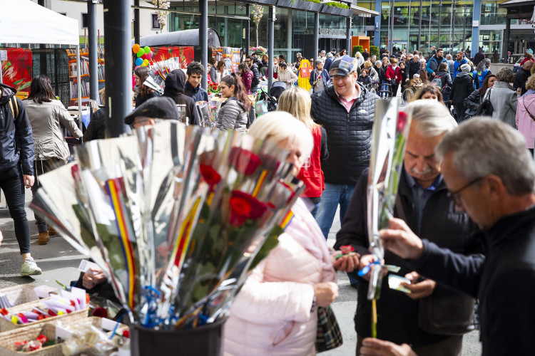 Conxita Marsol ha animat la població perquè es desplacin a la plaça del Poble per "comprar llibres, roses i sobretot per relacionar-se". D'altra banda, ha reconegut que és un dia de la setmana "difícil" a causa de les vacances escolars, i ha afegit que, "tot i això, hi ha moltíssima gent, per la qual cosa estem molt contents".