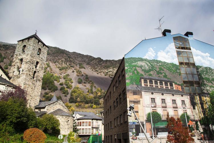 Després de dos mesos de treball, l'artista Samantha Bosque ha conclòs el mural de 400 metres quadrats al darrere de l'edifici del Comú i que pretén ser una "porta de benvinguda" a la parròquia. L’obra reflecteix el que es troba tot just al darrere d'aquesta façana: la plaça Príncep Benlloch.