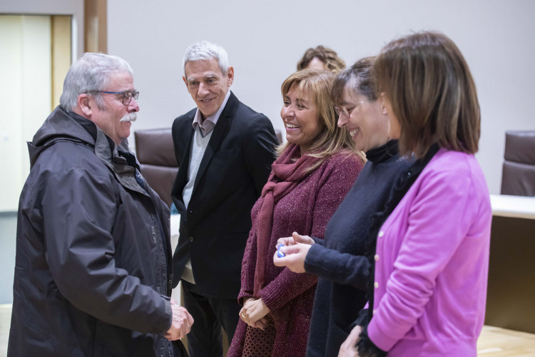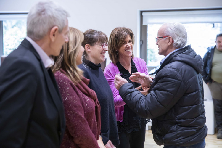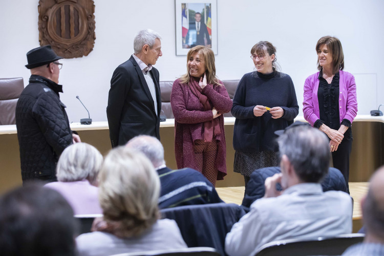 La cònsol major, Conxita Marsol, juntament amb la consellera de Social i Participació Ciutadana, Ester Vilarrubla; Xavier Cardelús; i Deborah Ribas, en nom de la Fundació Julià Reig, han fet entrega de les claus a la trentena de participants en el projecte en un acte a la sala de Consell de Comú.