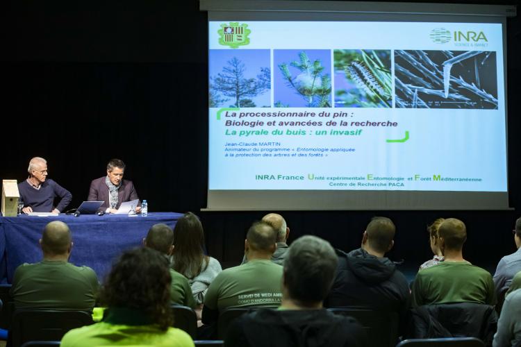 L’enginyer i investigador de la Unitat INRA del Centre experimental i bosc mediterrani i expert en programes de protecció de boscos contra plagues d’insectes, Jean-Claude Martin, ha ofert aquest matí una conferència al Centre Cultural La Llacuna adreçada als professionals de diferents administracions i entitats relacionades amb el sector forestal del país sobre com fer front a la processionària del pi. La xerrada, organitzada pel departament de Medi Ambient, s’ha dut a terme en el marc de la col·laboració encetada el curs passat amb l’Escola Maternal Francesa d’Andorra la Vella, amb qui es va fer un projecte educatiu relacionat amb la processionària i que aquesta setmana ha convidat Martin a fer activitats a l’escola.