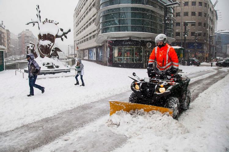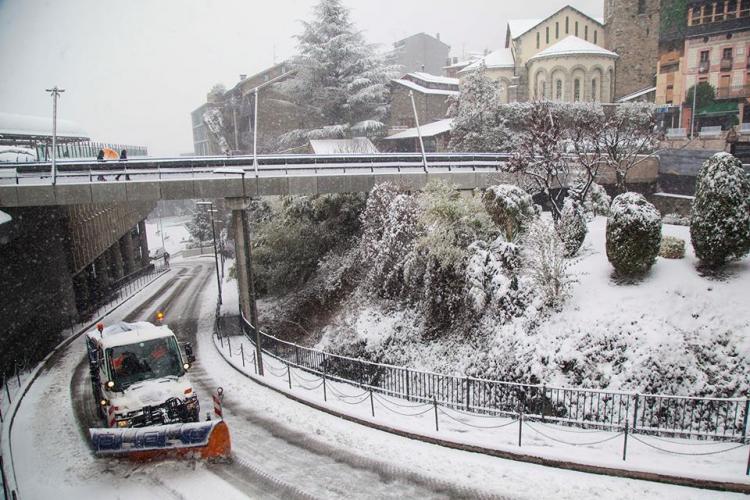 El Comú d’Andorra la Vella destina a aquest episodi de nevades una seixantena llarga d’efectius, a banda dels agents de circulació. El dispositiu especial s’ha posat en marxa a les 4 de la matinada per començar amb les tasques de treta de neu. Ara mateix hi ha activats quatre vehicles equipats amb pala i saladora per retirar la neu de les vies principals, així com 2 quads equipats i un muticultor per netejar les voravies i el passeig del riu.