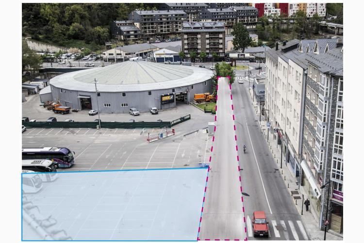 La cessió dels terrenys contempla una franja vertical de 1136,50m2 paral·lela al carrer Dr. Vilanova, que en permetrà l’eixamplament, i una parcel·la de 2.567m2 situada davant de l’edifici administratiu del Govern i que ocupa més de de la meitat de l’actual aparcament d’autobusos.