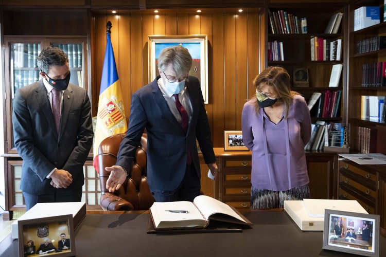 L’ambaixador de França a Andorra ha culminat la visita amb la signatura del llibre d’or. Jean-Claude Tribolet ha sabut, arran de la visita oficial, que la primera persona que va signar el llibre d’or del Comú d’Andorra la Vella va ser l’excopríncep François Mitterrand el setembre de 1986. La incorporació del diplomàtic es produeix un any després de la visita del copríncep Emmanuel Macron, que també va plasmar la seva signatura al despatx oficial.