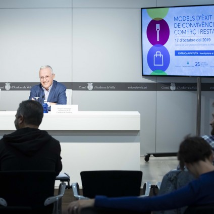 Èxit d’afluència a la jornada ‘Models d’èxit de convivència entre comerç i restauració’ celebrada avui al Centre de Congressos, organitzada pel Comú i la Cambra de Comerç amb la col·laboració de l’Associació del Centre Històric de la capital.